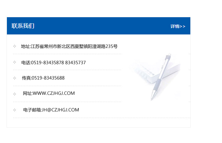 地址:常州市新北區友邦商務大廈1幢16、17層  電話:0519-85101652  傳真:0519-85112595  郵編:213022  網址:www.cz-jiayue_cn.weihuantao.com  郵箱:xiajifengaa@163.com
